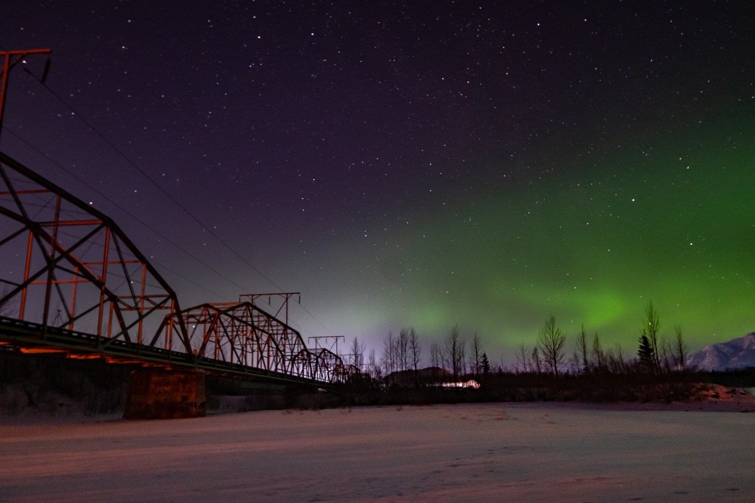 When I went out with Carl from Alaska Photo Treks in March, the forecast didn’t look too great in the city, but he took us to where the aurora could be seen (normally up to 70 miles out of Anchorage if need be!).