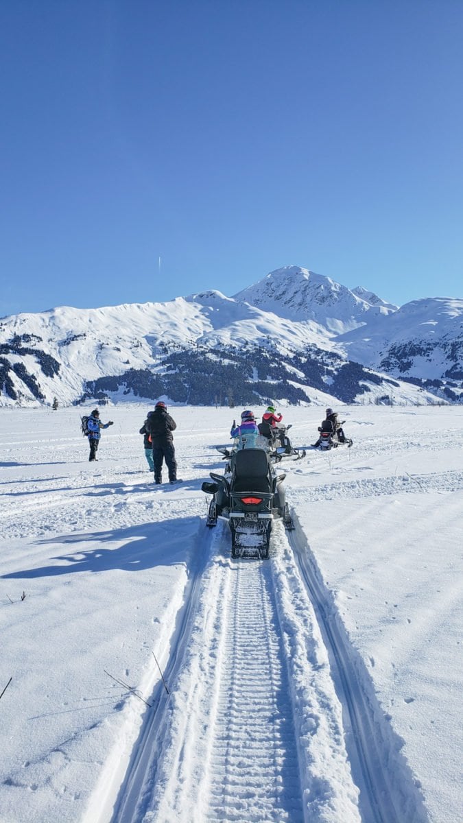 In addition to wandering around the icebergs and glaciers, there’s also the fun of doing one of the most popular activities in Alaska in the winter – snowmobiling. They actually refer to it as snow machining in Alaska for some reason – potato, potaaaato – it was a blast, whatever you call it.