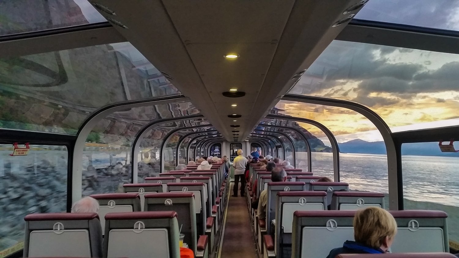 The train departs Seward at 6 PM and returns to Anchorage while the sun sets and once again lights up the Turnagain Arm.