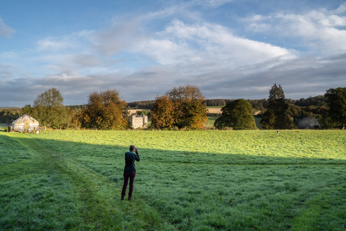 The glamping yurts are nestled among sycamore, oak, ash, chestnut, and hawthorn trees, forming natural enclosures around the yurts and shepherd’s huts. This grove is surrounded by an undulating wild green meadow with an open green flat pasture below, perched on a ledge of green land overlooking the turrets of the infamous Slane Castle. You’ll be on green overload!