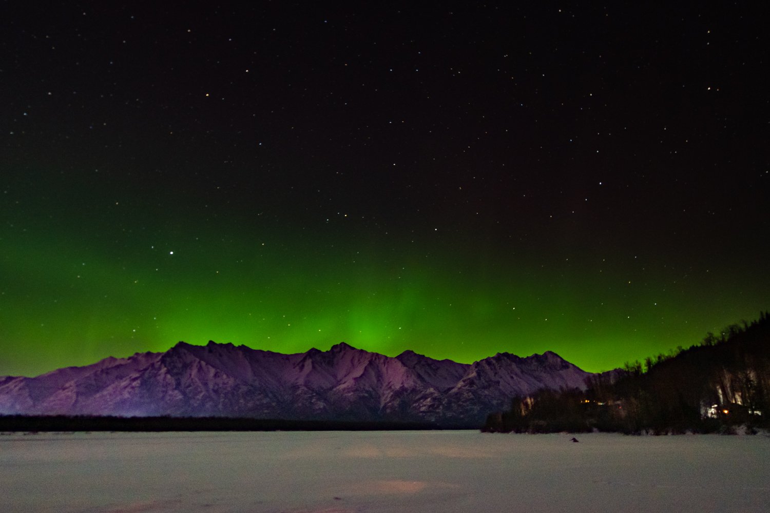 When I went out with Carl from Alaska Photo Treks in March, the forecast didn’t look too great in the city, but he took us to where the aurora could be seen (normally up to 70 miles out of Anchorage if need be!).