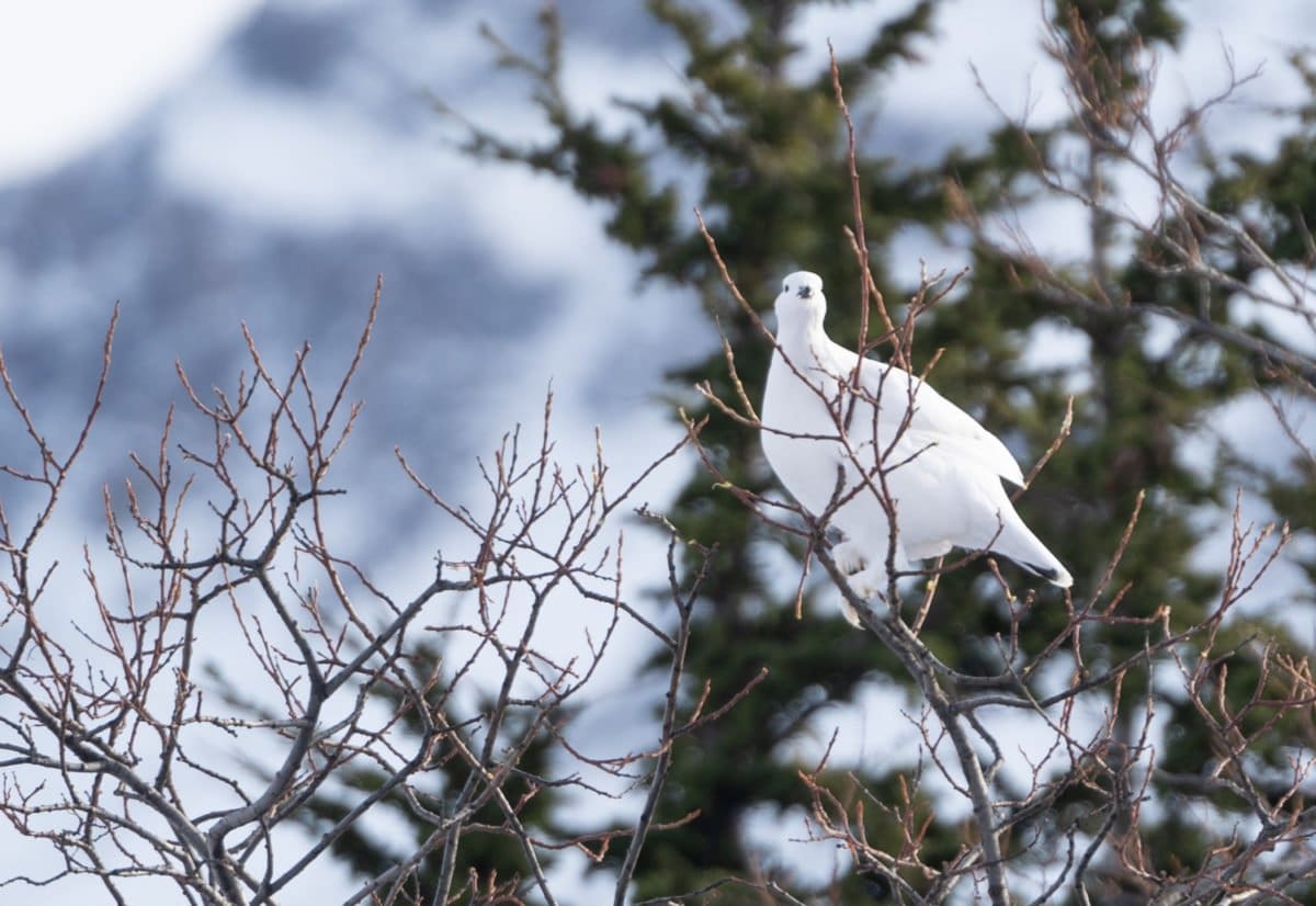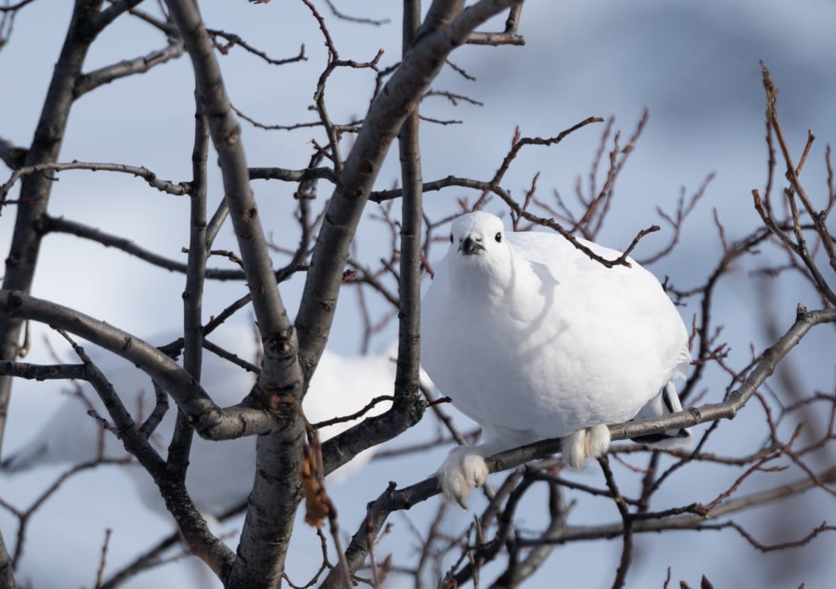 I find snowshoeing so relaxing – a time to take in the little things around you in nature. In fact, we even saw the Alaska state bird – the ptarmigan. It’s a fitting state bird because it doesn’t fly south in the winter; instead, it stays in the state all year long, and its feathers change from brown to white in the winter to blend into its environment. Plus – check out the feathers on its feet! Luckily, our guide heard it and was able to spot it! Something I never could’ve done on my own!