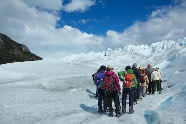 Perito Moreno – Aprox. $140 US (all day includes the viewpoint & park fee of $20 is separate). There was a constant flow of people on and off the glacier with much larger group sizes. Since the glacier is also viewable from the park on the viewing platforms – there were just more people in the park in general. More tour companies operated tours around the glacier so there was just more activity in general. It was never a real hindrance – but the experience didn’t feel as unique to me.