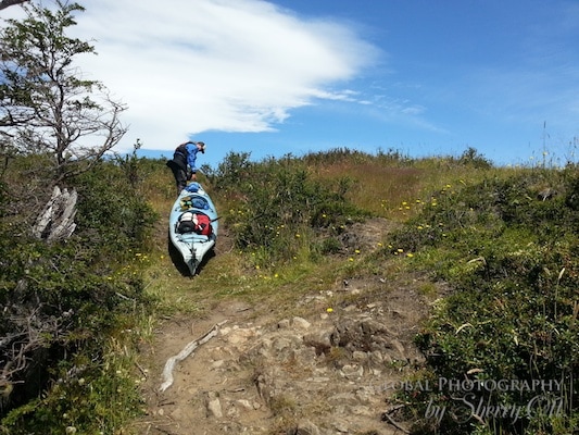 Alex, my guide for 3 days of kayaking, had a quiet, reserved demeanor but he was an excellent kayaker. I was lucky enough to share a double kayak with him else I doubt I would have made any progress in the strong winds of Patagonia. There were also a couple of spots where he had to walk/drag the kayak through shallow water as well as port it overland to avoid a water fall. He didn’t simply only provide muscle – but he also cooked dinners, helped set up and take down camp and was great at answering all of my inane questions about currents and paddling form. It was just the two of us for 3 days together – a great way to experience this remote part of the park. Especially after being on the busy trails of the W trek for the last few days. I relished the quiet and Alex’s laid back style.