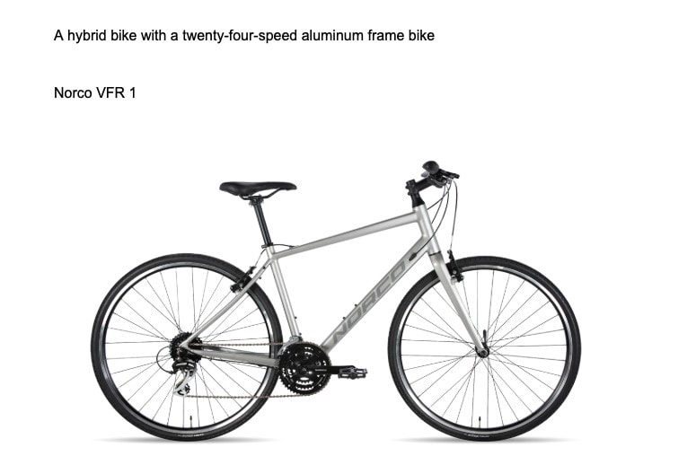 You can choose between a hybrid bike, gravel bike, or ebike (+$250)